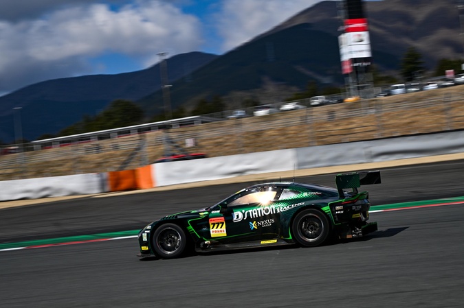 777 D’station Vantage GT3は、藤井誠暢選手がステアリングを握り、岡山公式テストから継続して今季から規定が変更された車高への合わせ込み、さらに岡山から使用したタイヤの合わせ込みなどを続け、午前は46周を走り1分36秒448というベストタイムを記録し5番手に。