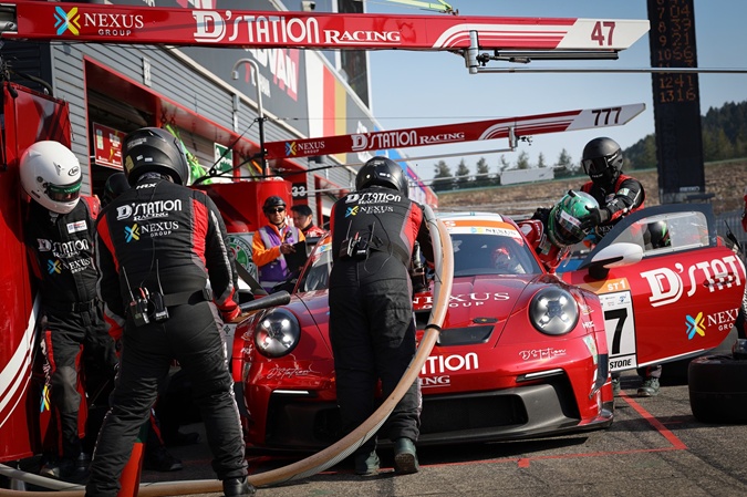 ST-1クラスに参戦する浜健二選手/星野辰也選手/田中哲也選手/樺木大河選手組#47 D’station Porsche 992は、Aドライバー予選で浜選手がクラストップにつける快走をみせ、2番手から決勝レース1に臨みました。